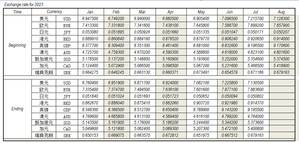 2023年7月外匯匯率,來源中國人民銀行供參考。