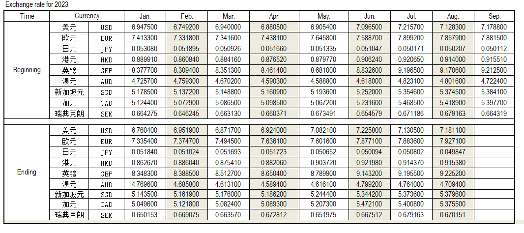 2023年8月外匯匯率,來源中國人民銀行供參考。