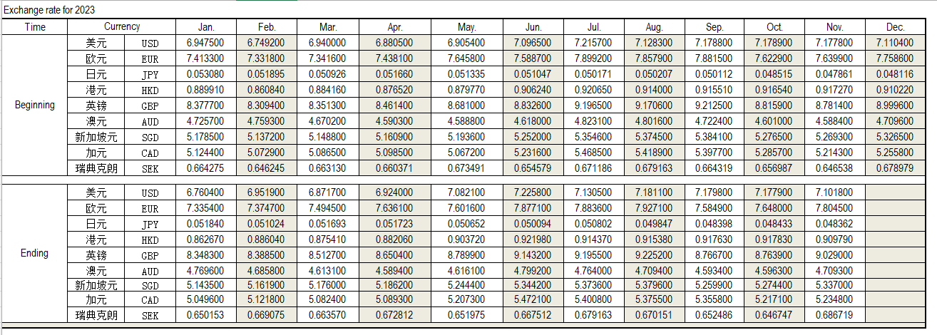 2023年11月外匯匯率,來源中國人民銀行供參考。